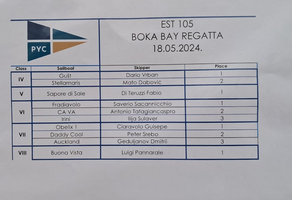 2° posto del nostro equipaggio di ÇA VA nella Boka Bay Regatta a Portonovi in Montenegro.