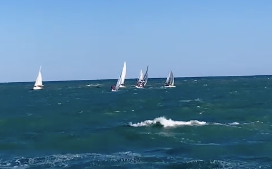 Come è evidente dal video, questa domenica un mare formato con onde di due metri e vento a 20 nodi...